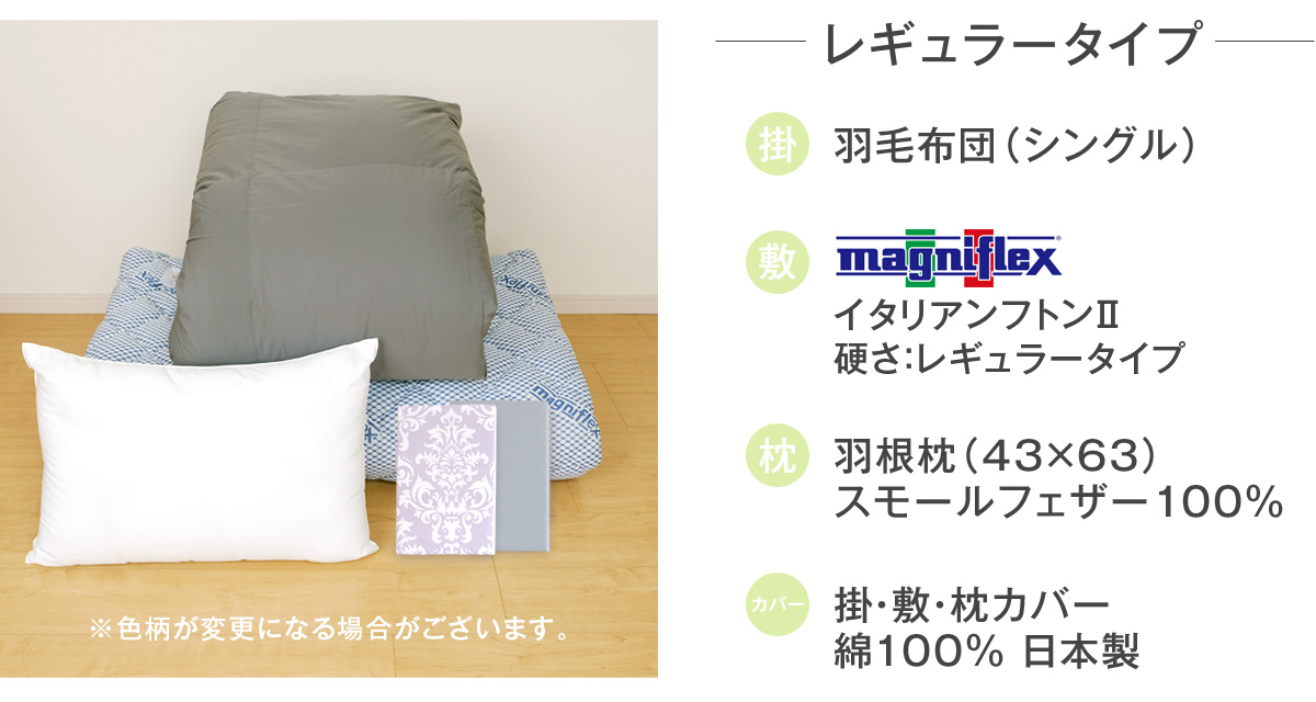 「羽毛布団 + 敷ふとん + まくら + 各種カバー」 1泊2日 4,400円~